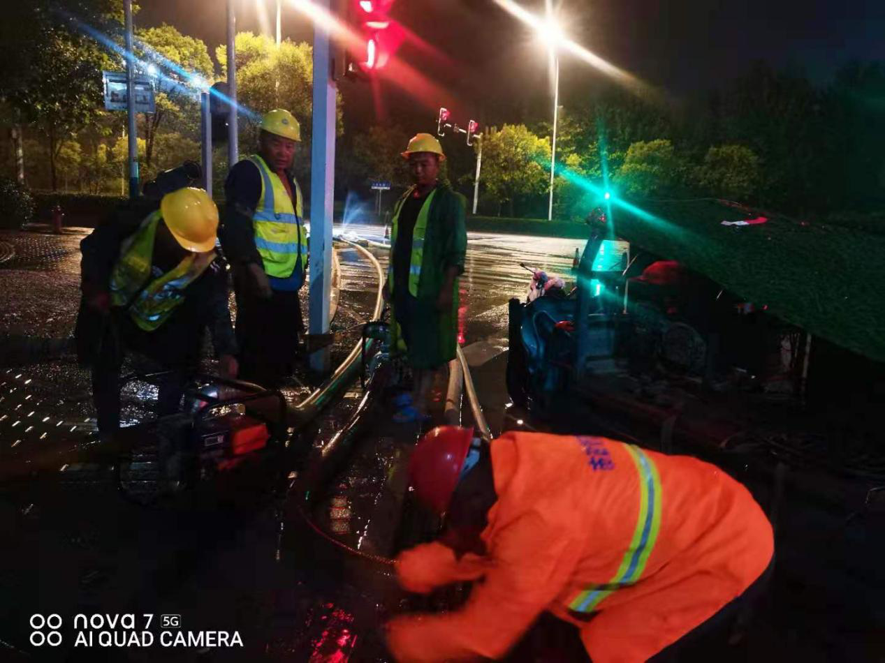 16日下午5時,亳州開始下小雨,天色依舊明亮,降雨量不大,但是我部人員依舊認真對待,在照常進行日常工作的同時提前把防汛設備準備到位。7時,烏云陡增,狂風呼嘯,雨點密集如子彈般落下,項目部派出車輛上路巡查,未發(fā)現(xiàn)嚴重積水。8時,發(fā)現(xiàn)部分小范圍積水,因處理及時,都未造成淹水。9時,劉金定路、月季路、憫農(nóng)路發(fā)現(xiàn)大范圍淹水,項目部下達緊急命令,在亳人員全員出動,各班組帶好工具設備,第一時間趕赴現(xiàn)場,多臺抽水泵同時運轉(zhuǎn),人員各司其職,迅速針對可能導致堵塞的原因進行排查,清理雨水篦子,檢查雨水井蓋。發(fā)現(xiàn)問題所在,全速解決問題。凌晨1時,劉金定路與月季路水位均已消退。凌晨3時,憫農(nóng)路水位消退。
