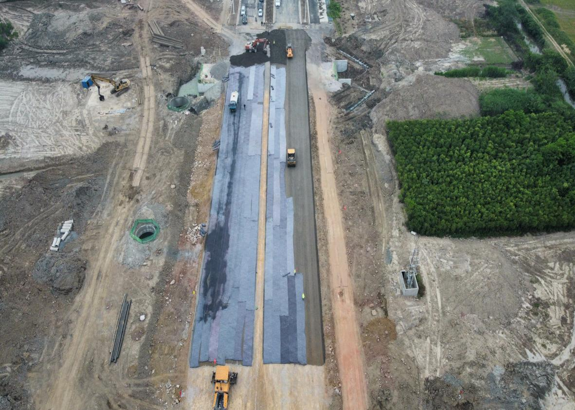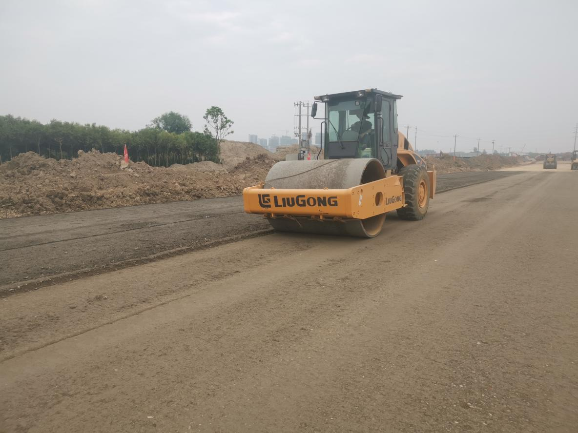 通過項(xiàng)目部的超前謀劃和精心組織,搶在梅雨季節(jié)來臨之前及時(shí)攤鋪水穩(wěn)封閉路床,神山東路K300~K650如期迎來了水穩(wěn)施工。開工前項(xiàng)目部對(duì)施工人員進(jìn)行了工藝工法、技術(shù)標(biāo)準(zhǔn)、安全環(huán)保施工等方面技術(shù)交底。施工過程中嚴(yán)格控制運(yùn)輸、攤鋪、碾壓等各個(gè)環(huán)節(jié)。施工現(xiàn)場(chǎng),攤鋪機(jī)、壓路機(jī)、輸料車忙碌有序,作業(yè)人員嚴(yán)格按照技術(shù)交底和規(guī)范要求認(rèn)真施工。經(jīng)過10個(gè)小時(shí)緊張連續(xù)施工,順利完成了施工任務(wù)。此次順利攤鋪為確保通車目標(biāo)按期實(shí)現(xiàn),奠定了堅(jiān)實(shí)的基礎(chǔ)。