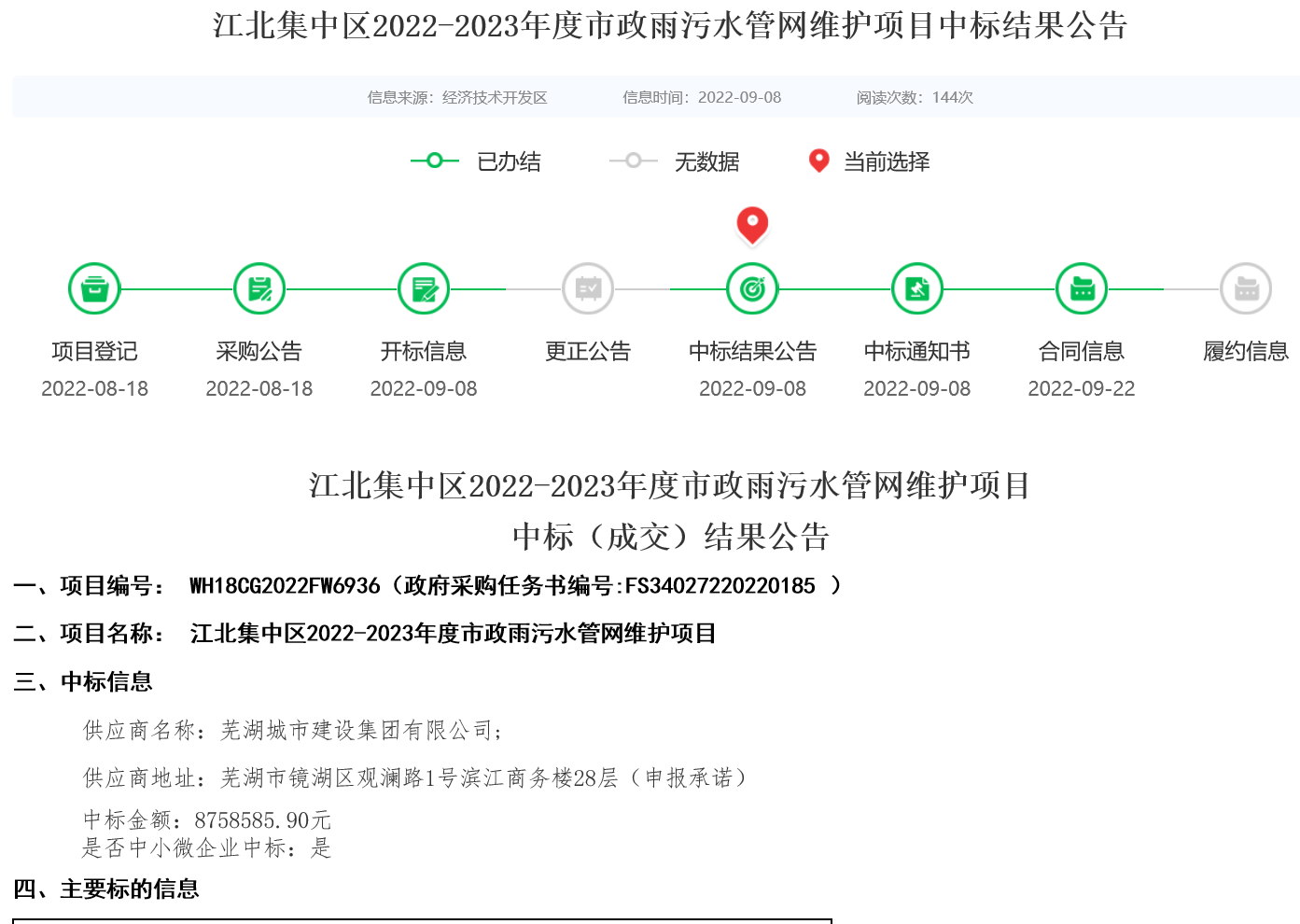 隨著城市經(jīng)濟建設的快速發(fā)展,地下雨污水管網(wǎng)不配套、設施老化等問題日顯突出。9月,繼鏡湖區(qū)保興垾等水系底泥清淤項目后,集團公司又中標江北集中區(qū)2022-2023年度市政雨污水管網(wǎng)維護項目,中標價875萬元。