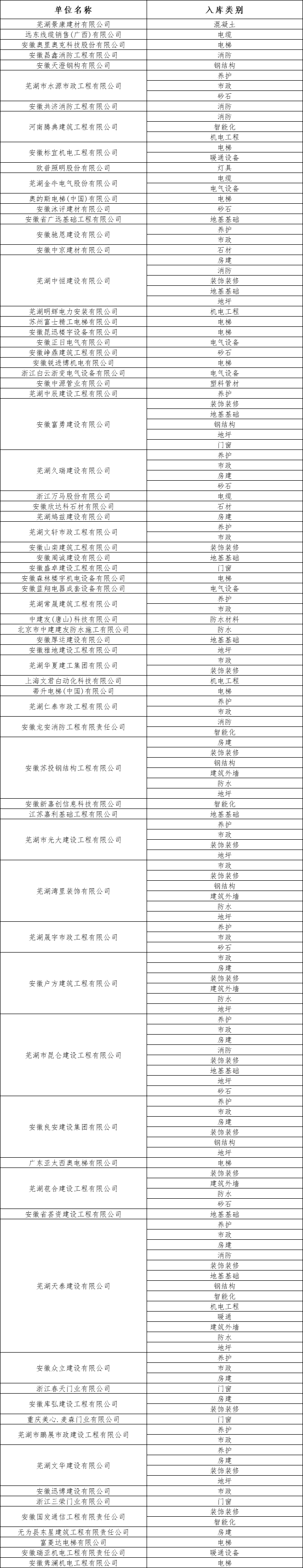 蕪湖城市建設(shè)集團(tuán)股份有限公司2025-2027年供應(yīng)商庫征集項(xiàng)目征集候選人公示